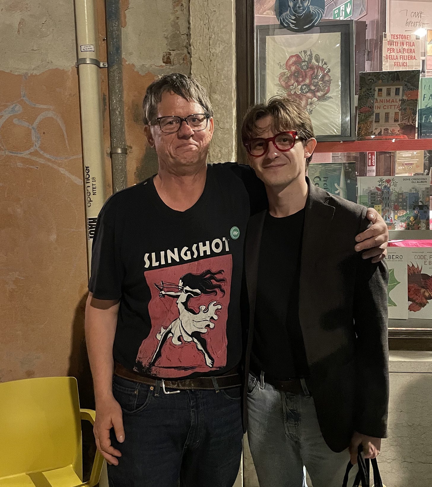 Bonus: ecco me e Vollmann (distrutti) alla Libreria Marco Polo di Venezia nel lontano 2022: