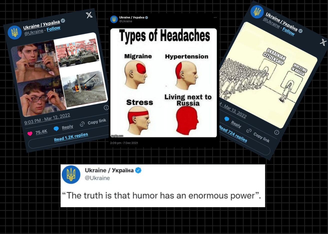 Come forse ricorderai, soprattutto nei primi tempi dell’invasione russa del 2022, anche l’Ucraina bombardava X di meme.