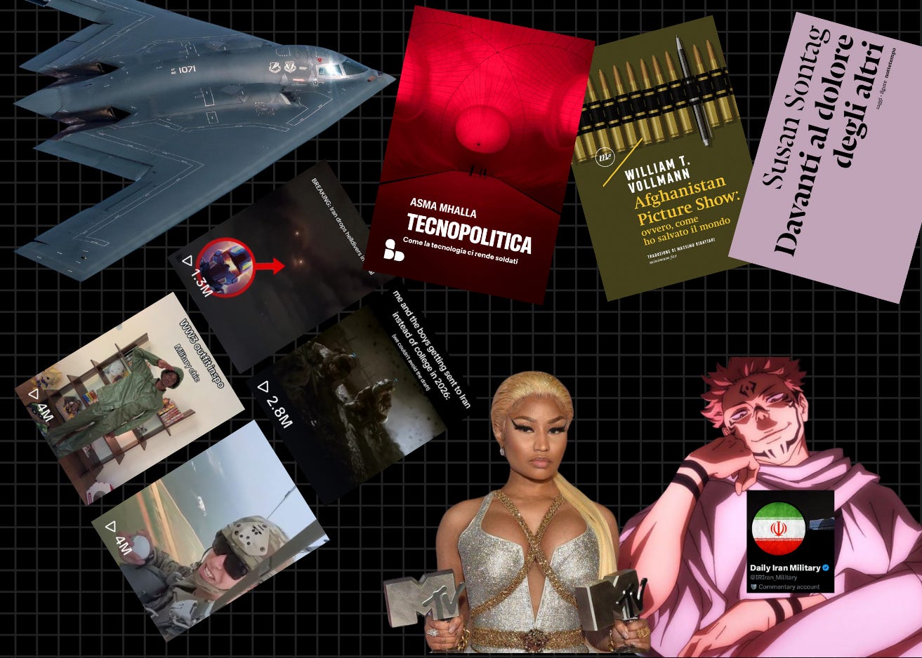 È ridicolo che nel 2025 possa scoppiare la terza guerra mondiale, così come è incredibile vedere il sassofonista libanese suonare o una discoteca ballare gli Abba mentre i missili iraniani volano verso Tel Aviv. Perciò, tutti quei meme su Call of Duty o su Battlefield, quei ganci visivi fatti con un missile che colpisce Israele, quei “get ready with me for my first world war” non sono soltanto contenuti per fare interazioni, ma un meccanismo di difesa contro le atrocità che ci coinvolgono e, in alcuni casi, strumenti di denuncia.